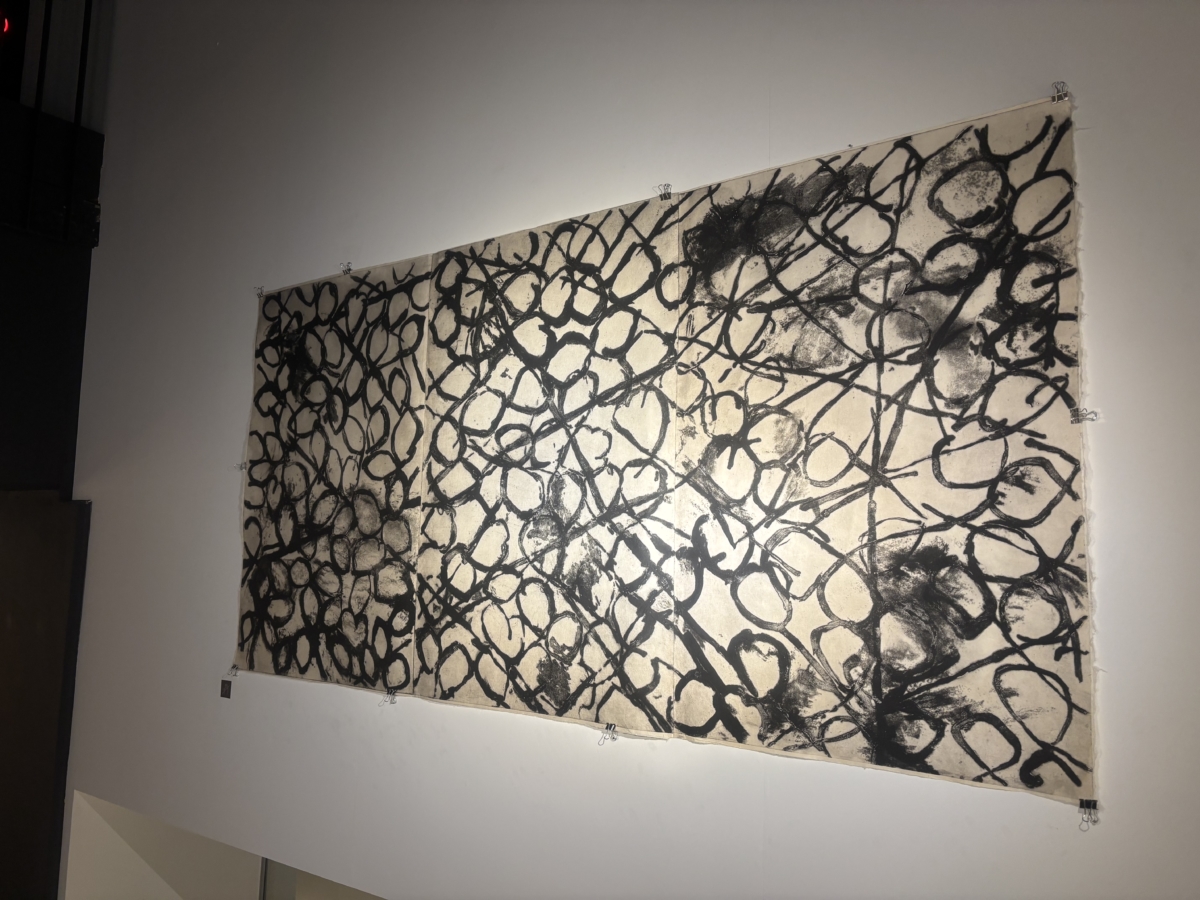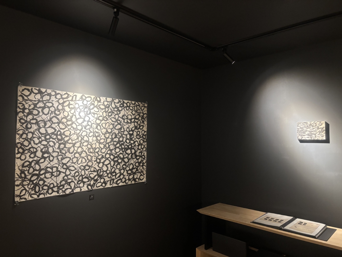 カフェスペースは、モノトーンの版画作品が並ぶ展示空間へと移ろいました。