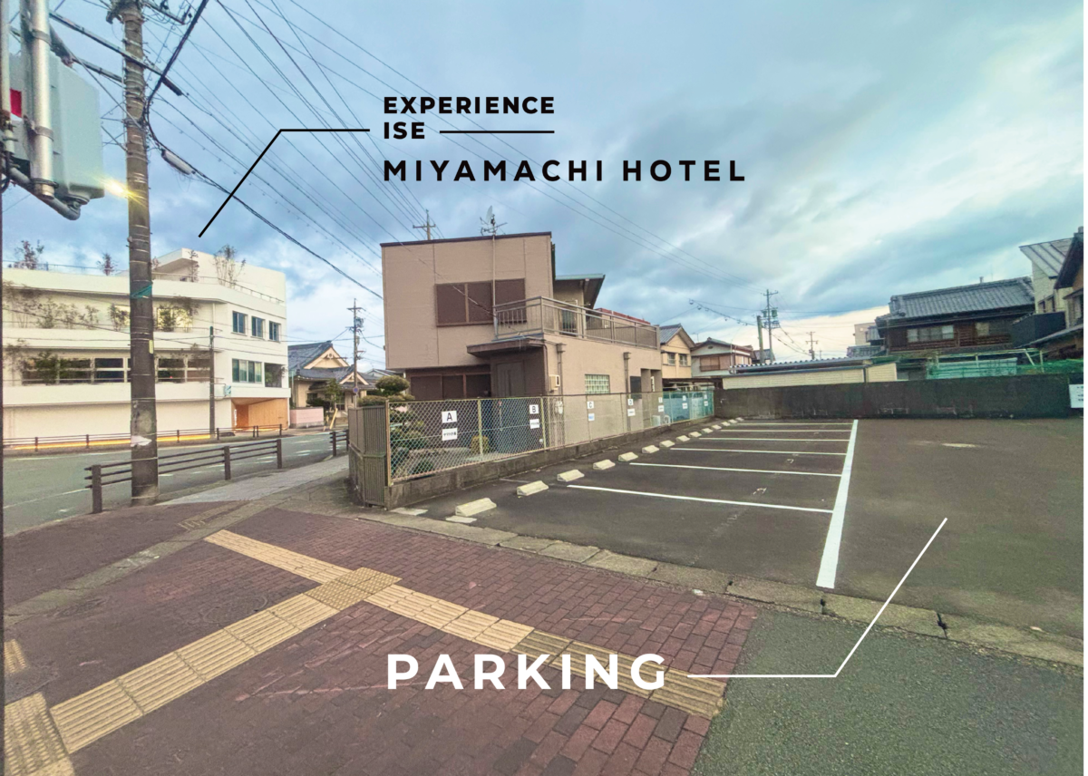近隣に駐車場がございます。【伊勢宮町ホテル】の表示のある箇所へご駐車ください。